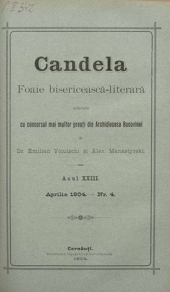 Candela, XXIII, nr. în TOM: 4, aprilie, 1904, Foaie bisericească-literară