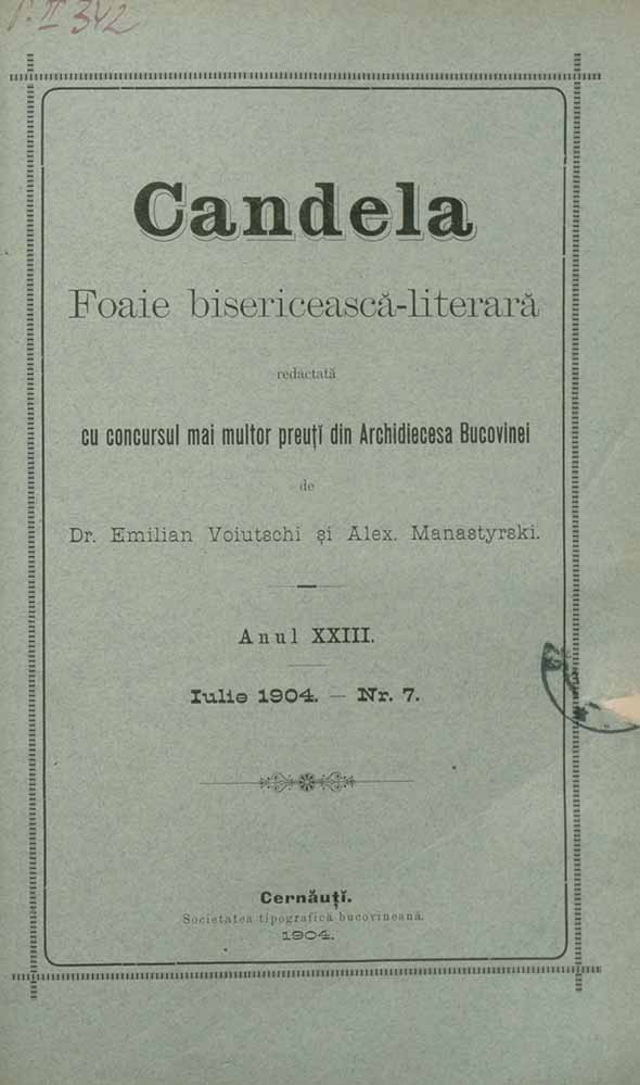 Candela, XXIII, nr. în TOM: 7, iulie, 1904, Foaie bisericească-literară