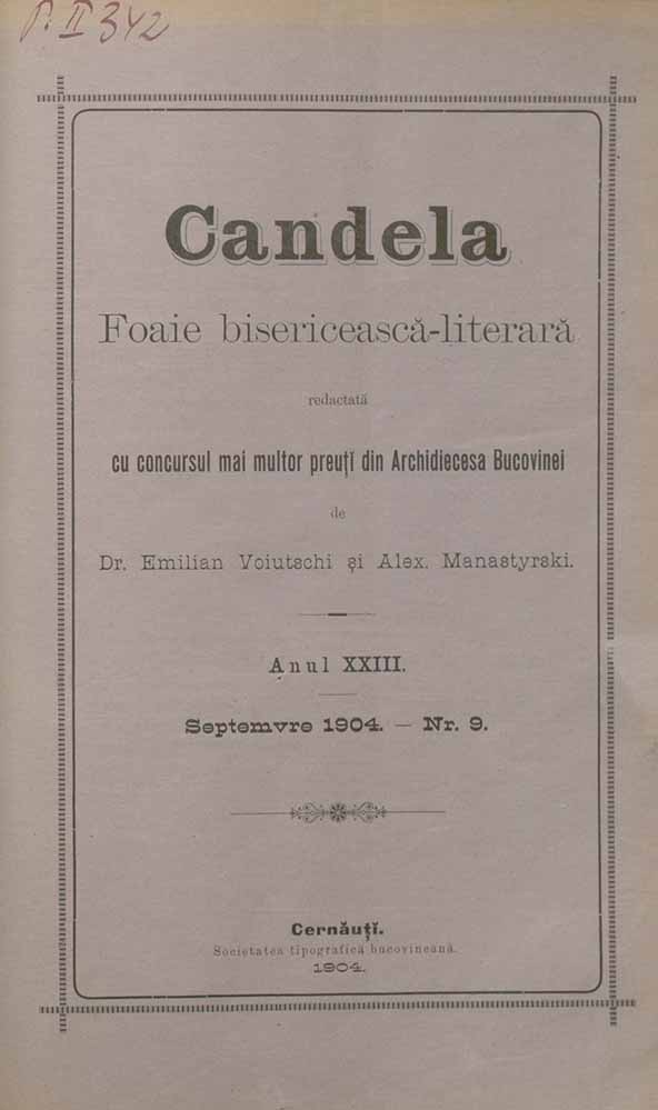 Candela, XXIII, nr. în TOM: 9, septembrie, 1904, Foaie bisericească-literară