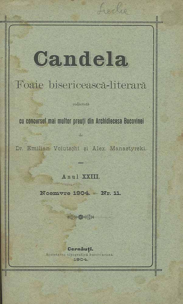 Candela, XXIII, nr. în TOM: 11, noiembrie, 1904, Foaie bisericească-literară