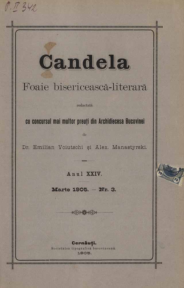 Candela, XXIV, nr. în TOM: 3, martie, 1905, Foaie bisericească-literară