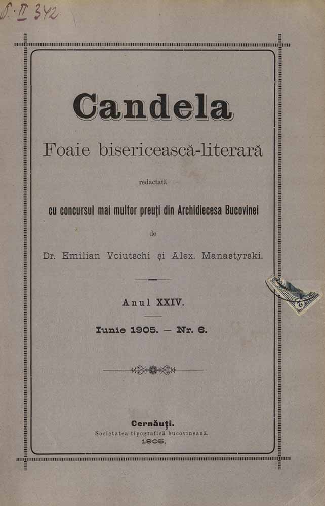 Candela, XXIV, nr. în TOM: 6, iunie, 1905, Foaie bisericească-literară
