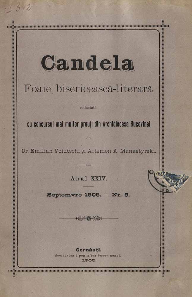 Candela, XXIV, nr. în TOM: 9, septembrie, 1905, Foaie bisericească-literară