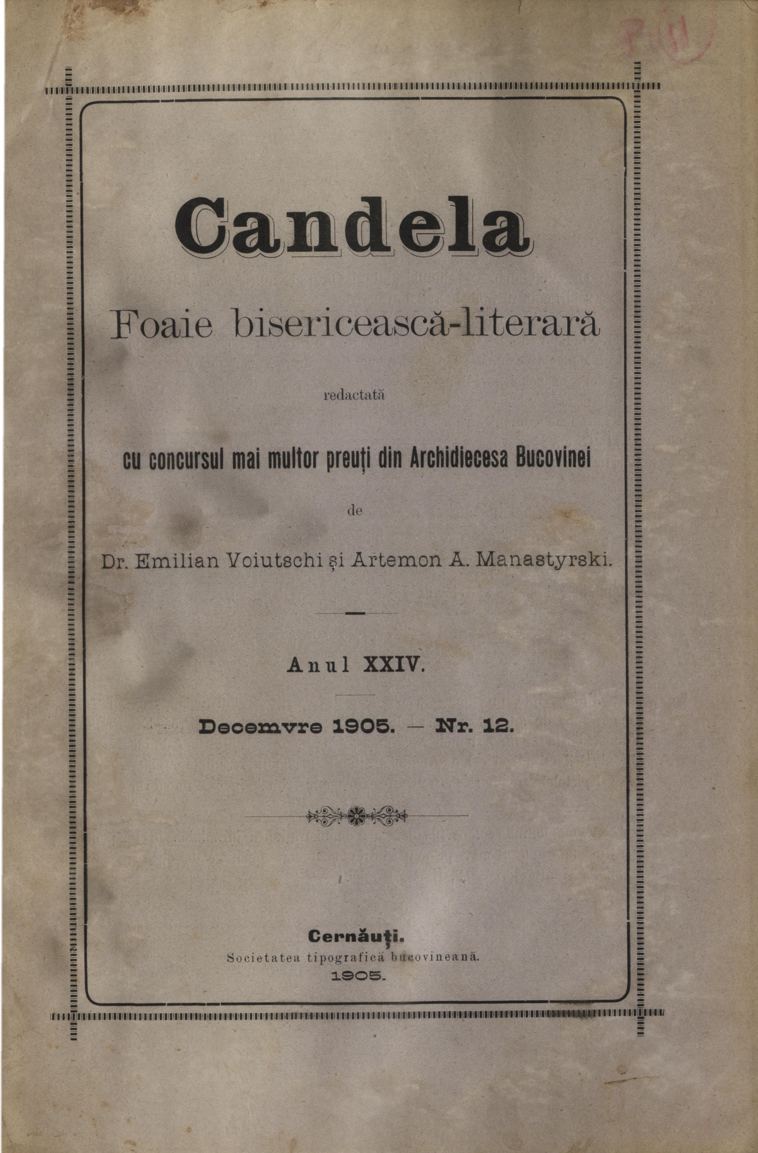 Candela, XXIV, nr. în TOM: 12, decembrie, 1905, Foaie bisericească-literară