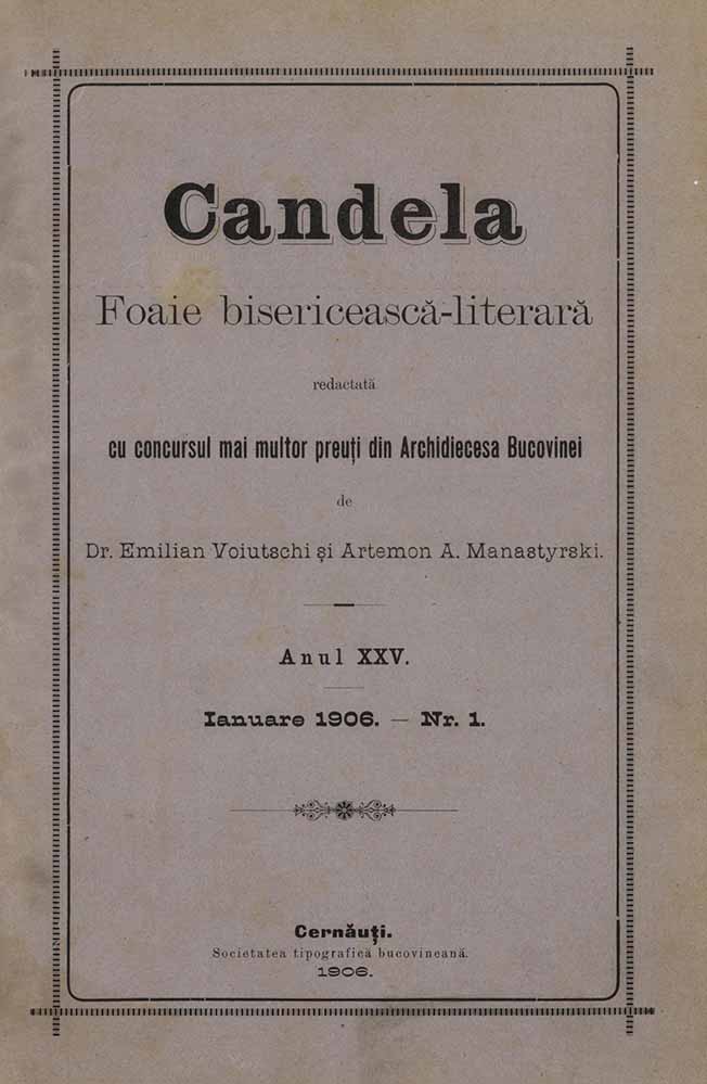 Candela, XXV, nr. în TOM: 1, ianuarie, 1906, Foaie bisericească-literară