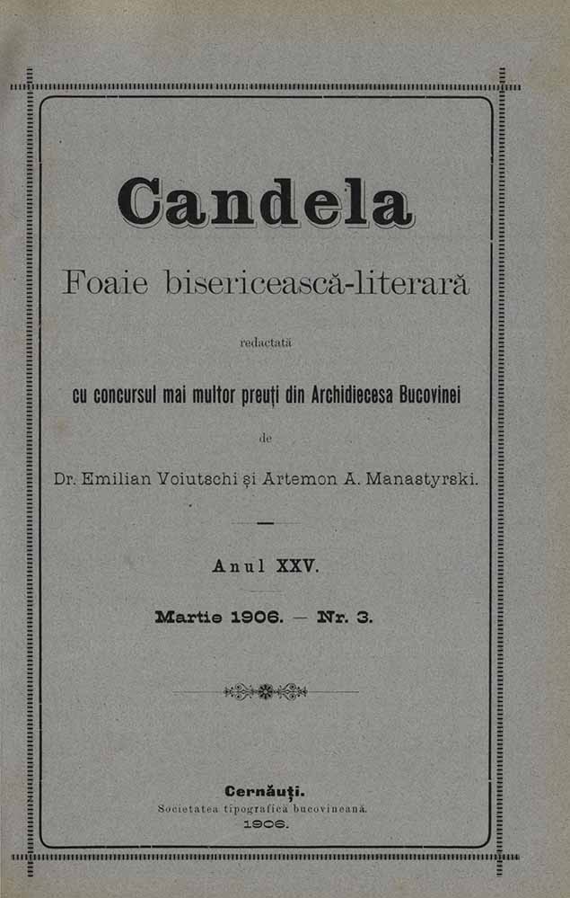 Candela, XXV, nr. în TOM: 3, martie, 1906, Foaie bisericească-literară