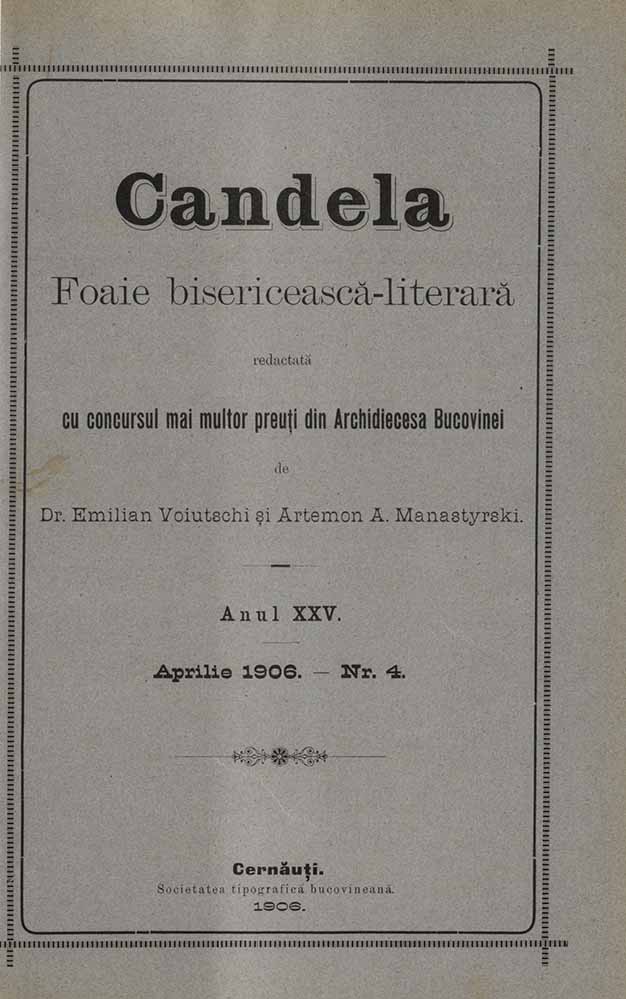 Candela, XXV, nr. în TOM: 4, aprilie, 1906, Foaie bisericească-literară