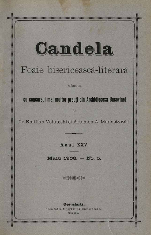 Candela, XXV, nr. în TOM: 5, mai, 1906, Foaie bisericească-literară