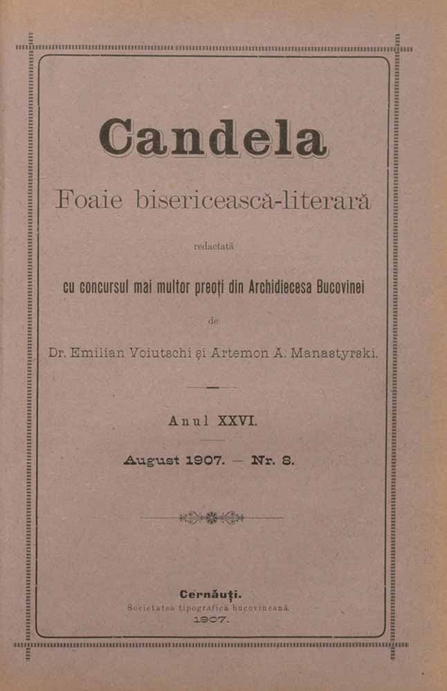 Candela, XXVI, nr. în TOM: 8, august, 1907, Foaie bisericească-literară