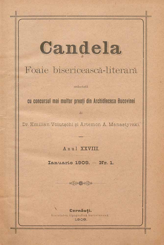 Candela, XXVIII, nr. în TOM: 1, ianuarie, 1909, Foaie bisericească-literară