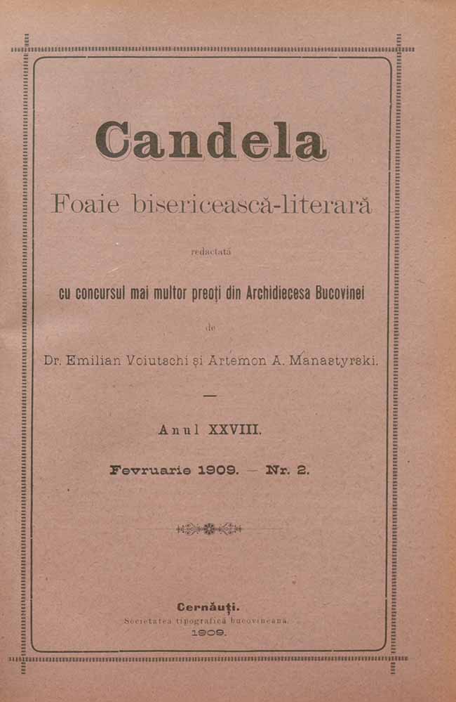 Candela, XXVIII, nr. în TOM: 2, februarie, 1909, Foaie bisericească-literară