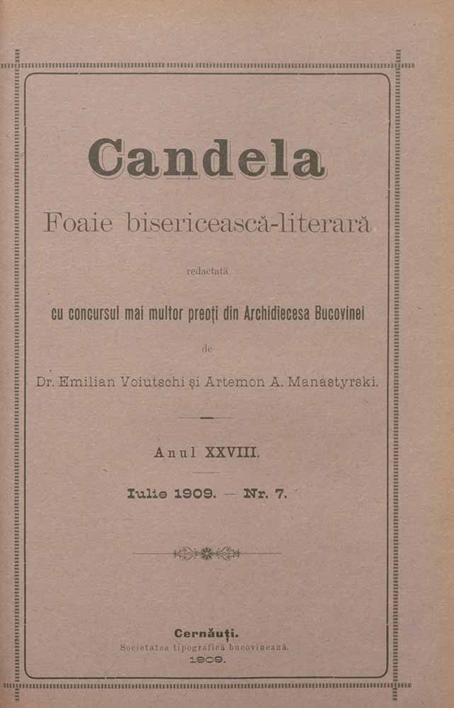 Candela, XXVIII, nr. în TOM: 7, iulie, 1909, Foaie bisericească-literară
