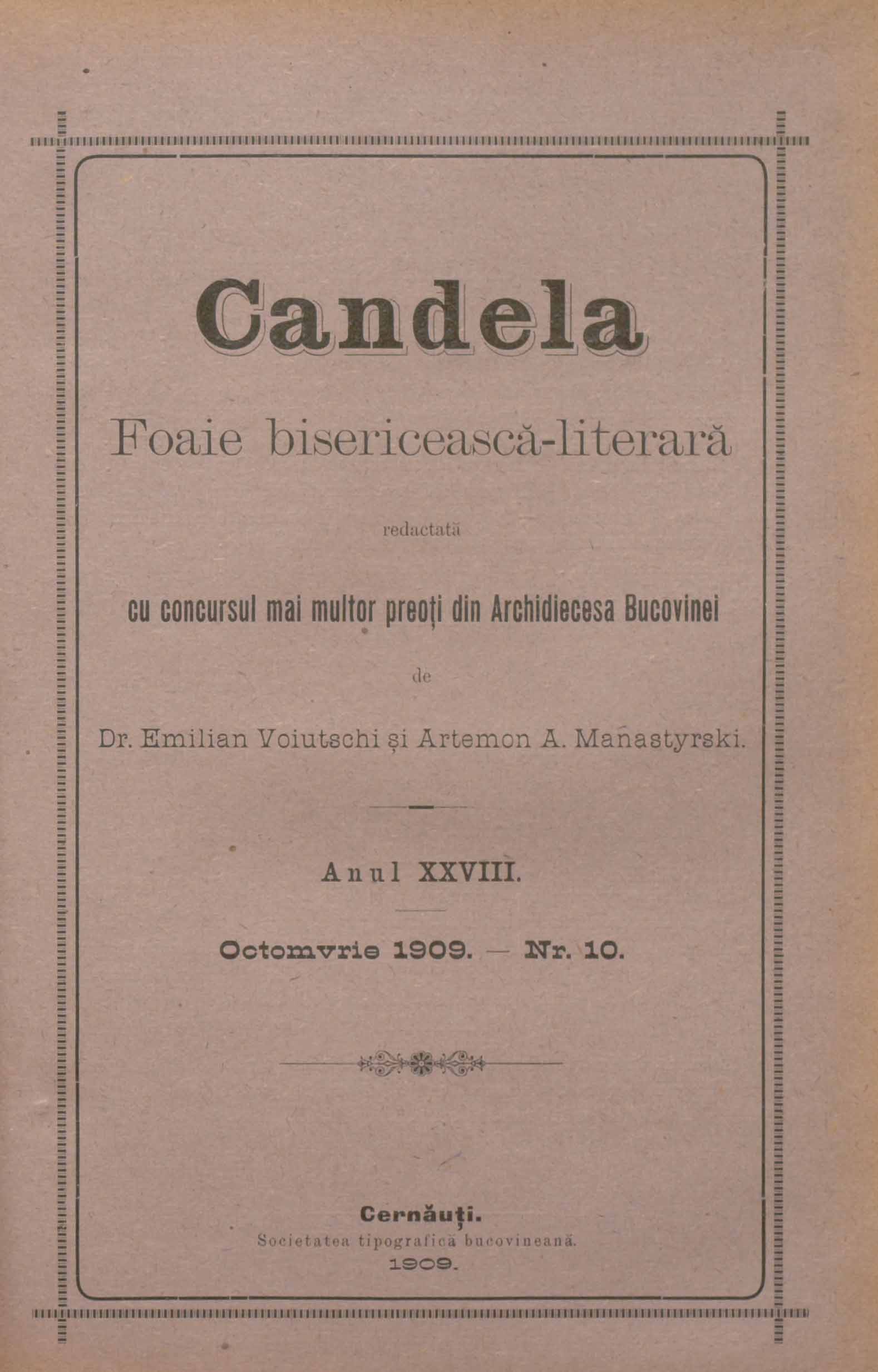Candela, XXVIII, nr. în TOM: 10, octombrie, 1909, Foaie bisericească-literară