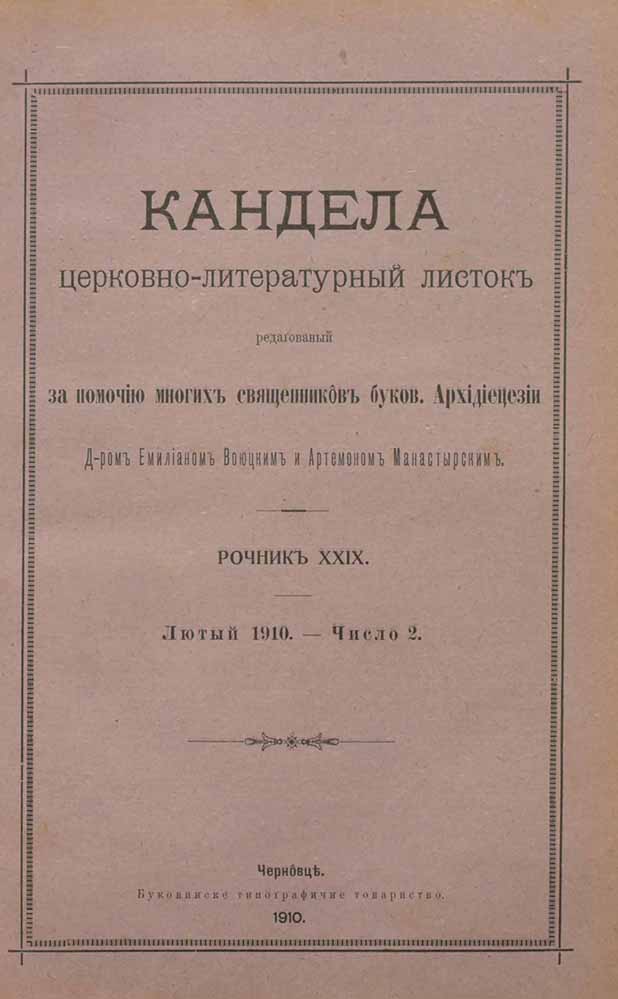 Candela, XXIX, nr. în TOM: 2, februarie, 1910, Foaie bisericească-literară