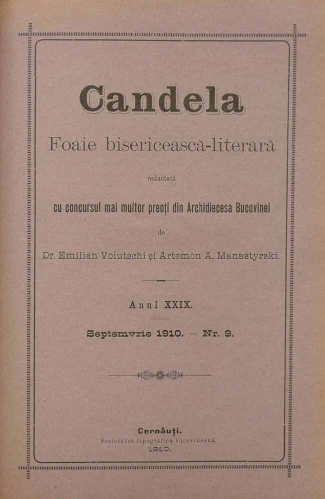 Candela, XXIX, nr. în TOM: 9, septembrie, 1910, Foaie bisericească-literară