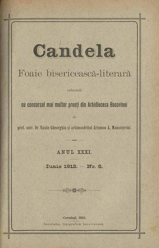 Candela, XXXI, nr. în TOM: 6, iunie, 1912, Foaie bisericească-literară