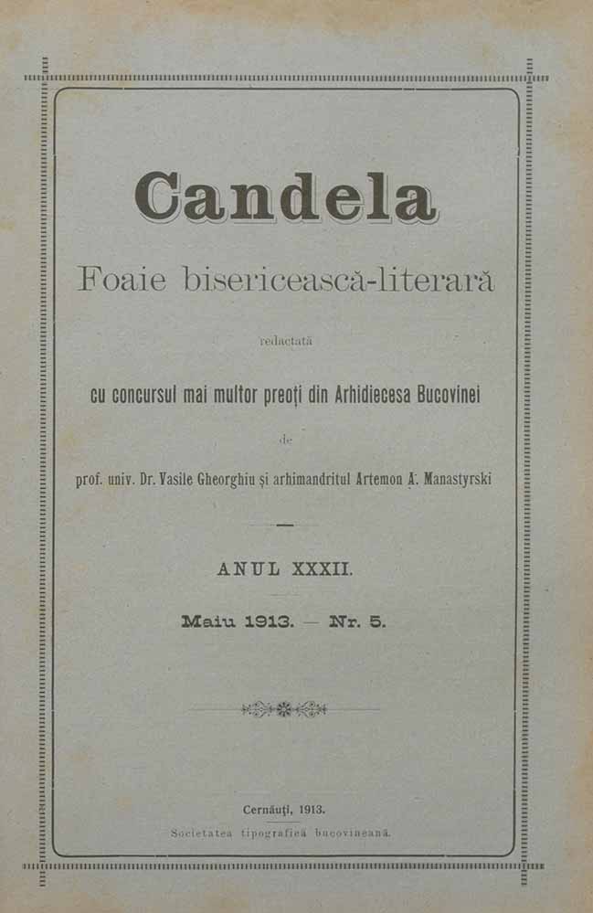 Candela, XXXII, nr. în TOM: 5, mai, 1913, Foaie bisericească-literară