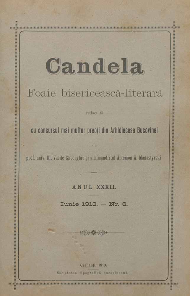 Candela, XXXII, nr. în TOM: 6, iunie, 1913, Foaie bisericească-literară