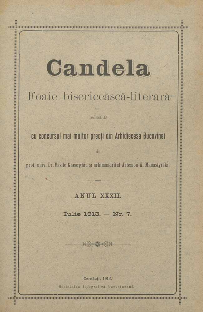 Candela, XXXII, nr. în TOM: 7, iulie, 1913, Foaie bisericească-literară