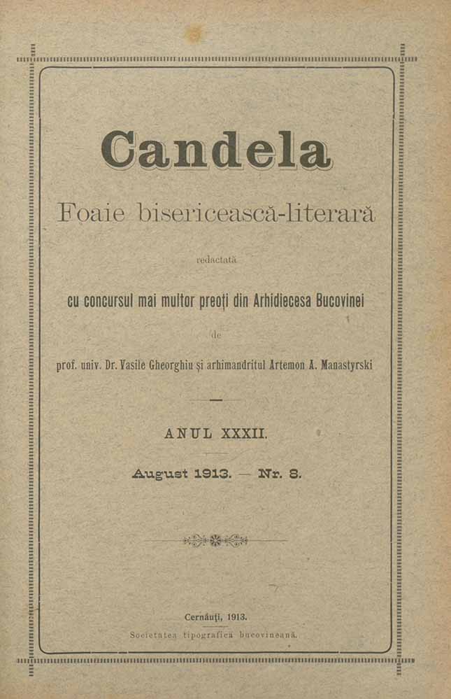 Candela, XXXII, nr. în TOM: 8, august, 1913, Foaie bisericească-literară