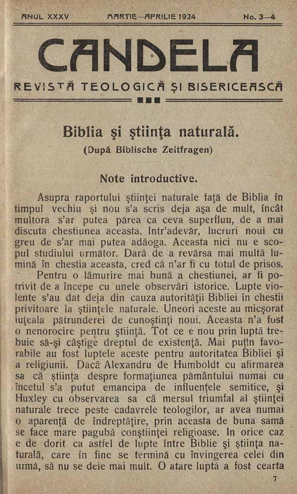 Candela, XXXV, nr. în TOM: 3-4, martie-aprilie, 1924, Revistă teologică și bisericească