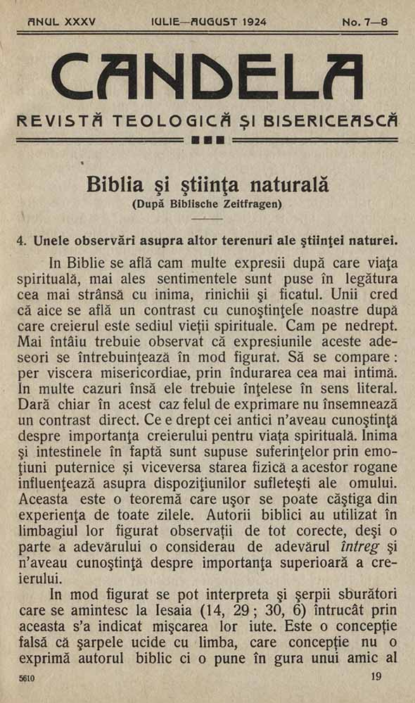 Candela, XXXV, nr. în TOM: 7-8, iulie-august, 1924, Revistă teologică și bisericească