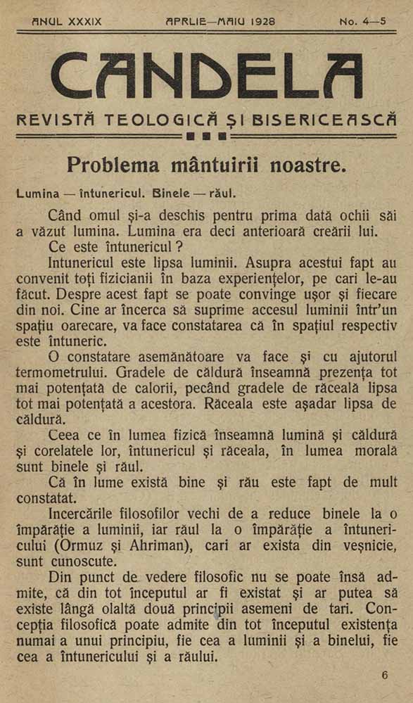 Candela, XXXIX, nr. în TOM: 4-5, aprilie-mai, 1928, Revistă teologică și bisericească