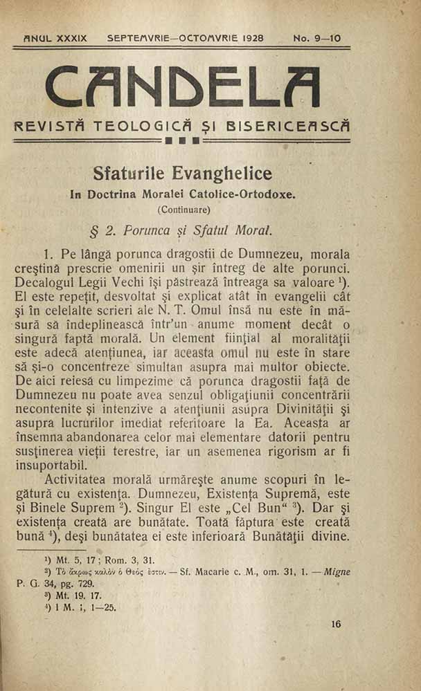 Candela, XXXIX, nr. în TOM: 9-10, septembrie-octombrie, 1928, Revistă teologică și bisericească