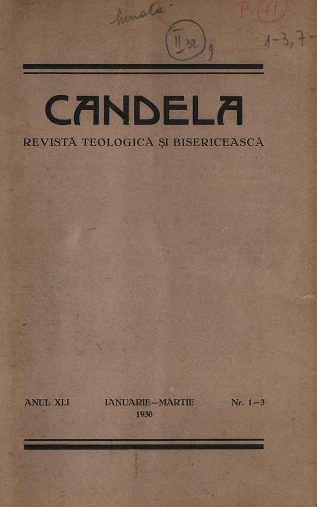 Candela, XLI, nr. în TOM: 1-3, ianuarie-martie, 1930, Revistă teologică și bisericească