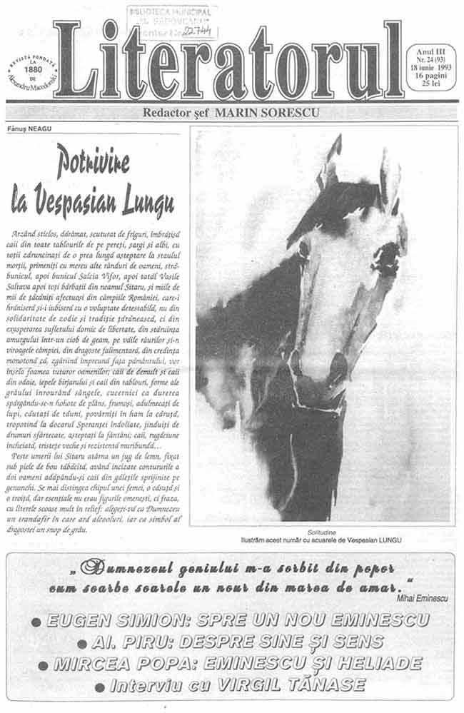 Literatorul, III, nr. în TOM: 24, 18 iunie, 1993, serie nouă