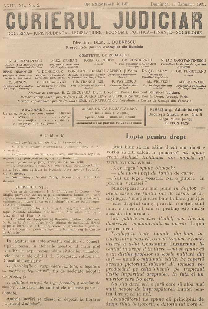 Curierul Judiciar, nr. în TOM: 2, 11 ianuarie, 1931 info Descriere × DOCTRINĂ - JURISPRUDENȚĂ - LEGISLAȚIUNE - ECONOMIE POLITICĂ - FINANȚE Descarcă Citește × --> Anul publicației: 1931 Nr. total: XL Contributori: Institutul de Istorie „Nicolae Iorga” București Tipul publicației: periodic Vezi publicația: Curierul Judiciar Domenii asociate: Istorie, Justiție