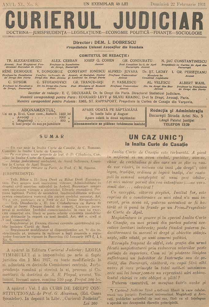 Curierul Judiciar, nr. în TOM: 8, 22 februarie, 1931 info Descriere × DOCTRINĂ - JURISPRUDENȚĂ - LEGISLAȚIUNE - ECONOMIE POLITICĂ - FINANȚE Descarcă Citește × --> Anul publicației: 1931 Nr. total: XL Contributori: Institutul de Istorie „Nicolae Iorga” București Tipul publicației: periodic Vezi publicația: Curierul Judiciar Domenii asociate: Istorie, Justiție