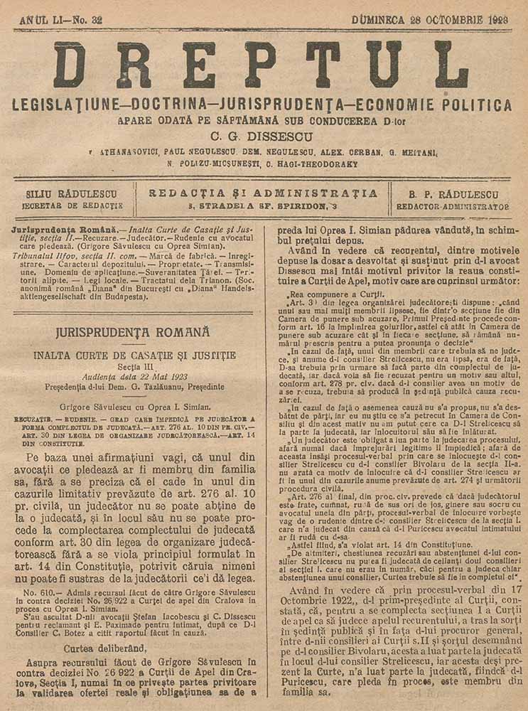 Dreptul, LI, nr. în TOM: 32, 28 octombrie, 1923 Descarcă Citește × --> Anul publicației: 1923 Publicată de: Institutul de Istorie „Nicolae Iorga” București Contributori: Institutul de Istorie „Nicolae Iorga” București Tipul publicației: periodic Vezi publicația: Dreptul Domenii asociate: Drept, Științe juridice
