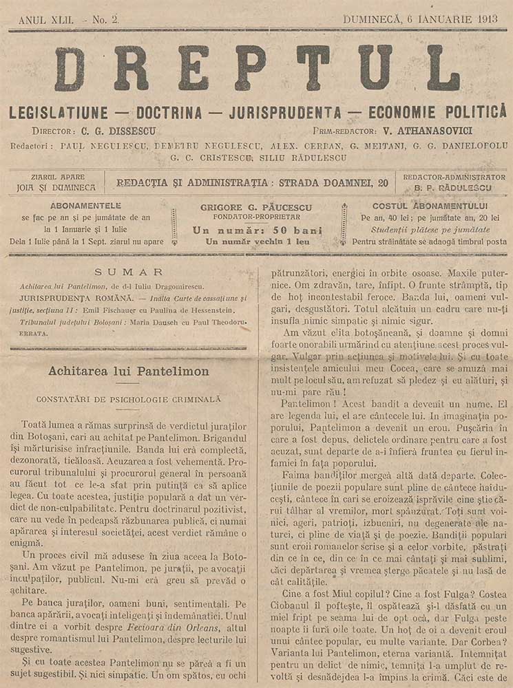 Dreptul, XLII, nr. în TOM: 2, 6 ianuarie, 1913 Descarcă Citește × --> Anul publicației: 1913 Publicată de: Institutul de Istorie „Nicolae Iorga” București Contributori: Institutul de Istorie „Nicolae Iorga” București Tipul publicației: periodic Vezi publicația: Dreptul Domenii asociate: Drept, Științe juridice