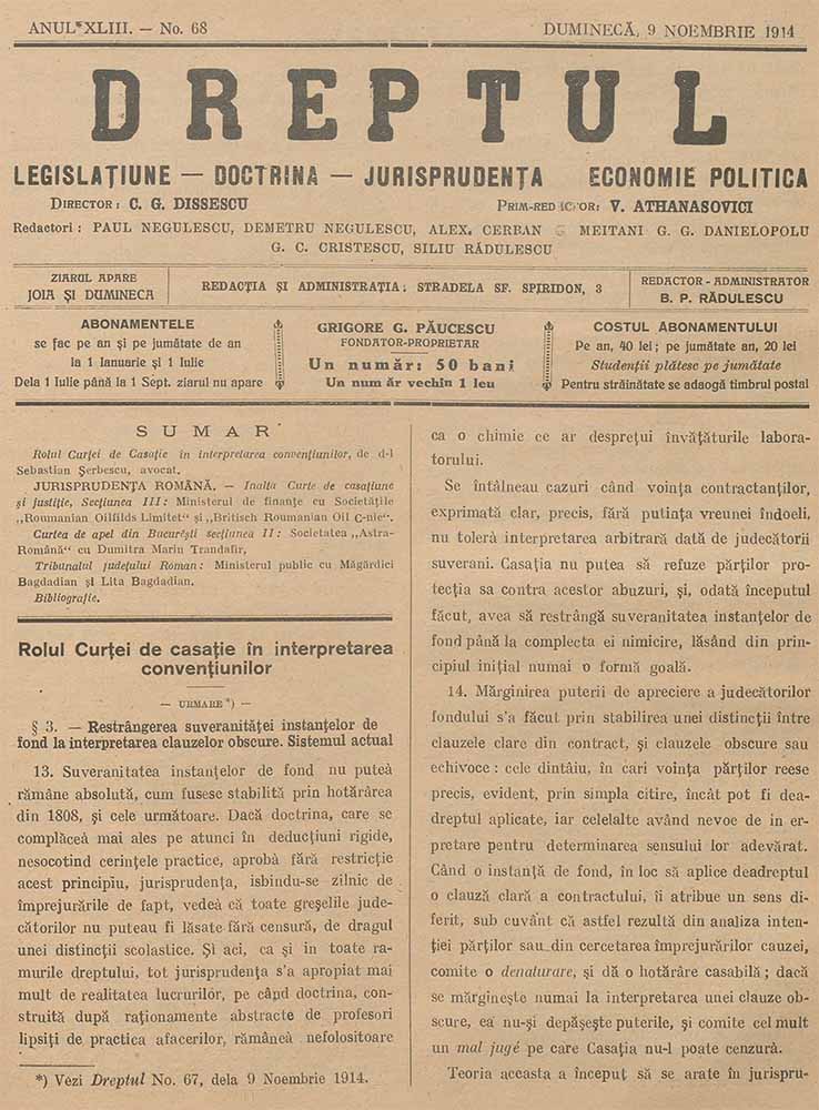 Dreptul, XLIII, nr. în TOM: 68, 9 noiembrie, 1914 Descarcă Citește × --> Anul publicației: 1914 Publicată de: Institutul de Istorie „Nicolae Iorga” București Contributori: Institutul de Istorie „Nicolae Iorga” București Tipul publicației: periodic Vezi publicația: Dreptul Domenii asociate: Drept, Științe juridice