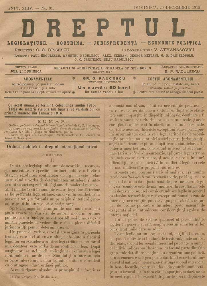 Dreptul, XLIV, nr. în TOM: 81, 20 decembrie, 1915 Descarcă Citește × --> Anul publicației: 1915 Publicată de: Institutul de Istorie „Nicolae Iorga” București Contributori: Institutul de Istorie „Nicolae Iorga” București Tipul publicației: periodic Vezi publicația: Dreptul Domenii asociate: Drept, Științe juridice
