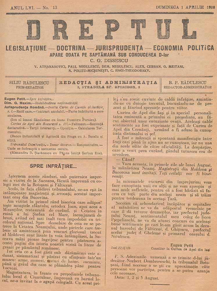 Dreptul, nr. în TOM: 13, 1 aprilie, 1928