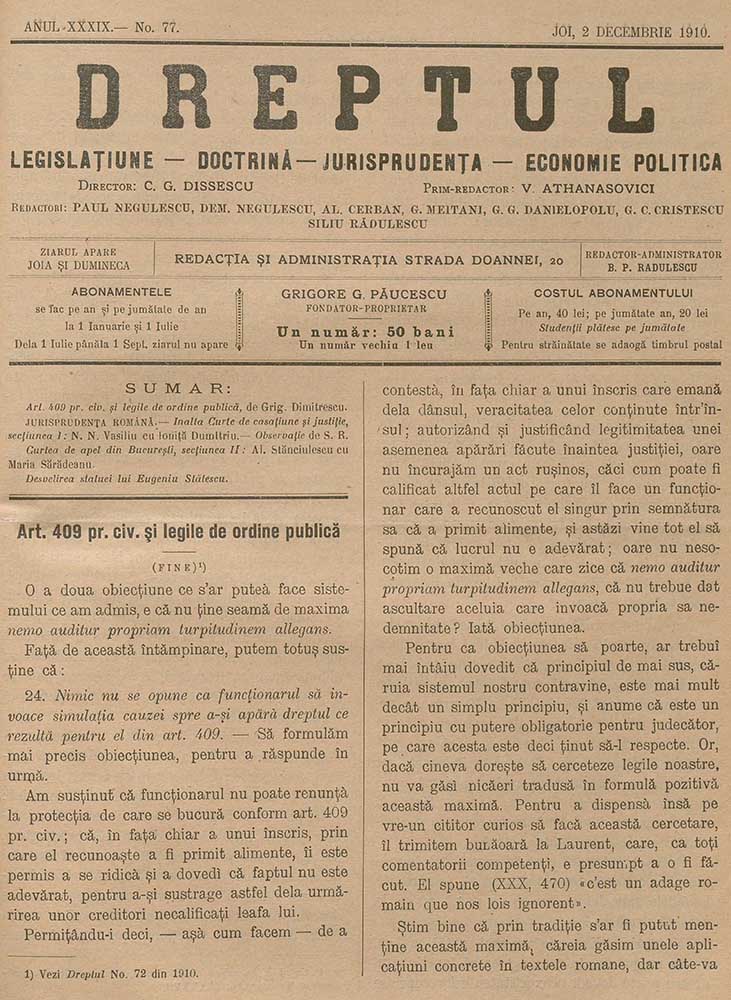 Dreptul, XXXIX, nr. în TOM: 77, 2 decembrie, 1910 Descarcă Citește × --> Anul publicației: 1910 Publicată de: Institutul de Istorie „Nicolae Iorga” București Contributori: Institutul de Istorie „Nicolae Iorga” București Tipul publicației: periodic Vezi publicația: Dreptul Domenii asociate: Drept, Științe juridice