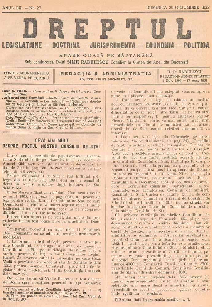 Dreptul, LX, nr. în TOM: 27, 30 octombrie, 1932 Descarcă Citește × --> Anul publicației: 1932 Publicată de: Institutul de Istorie „Nicolae Iorga” București Contributori: Institutul de Istorie „Nicolae Iorga” București Tipul publicației: periodic Vezi publicația: Dreptul Domenii asociate: Drept, Științe juridice