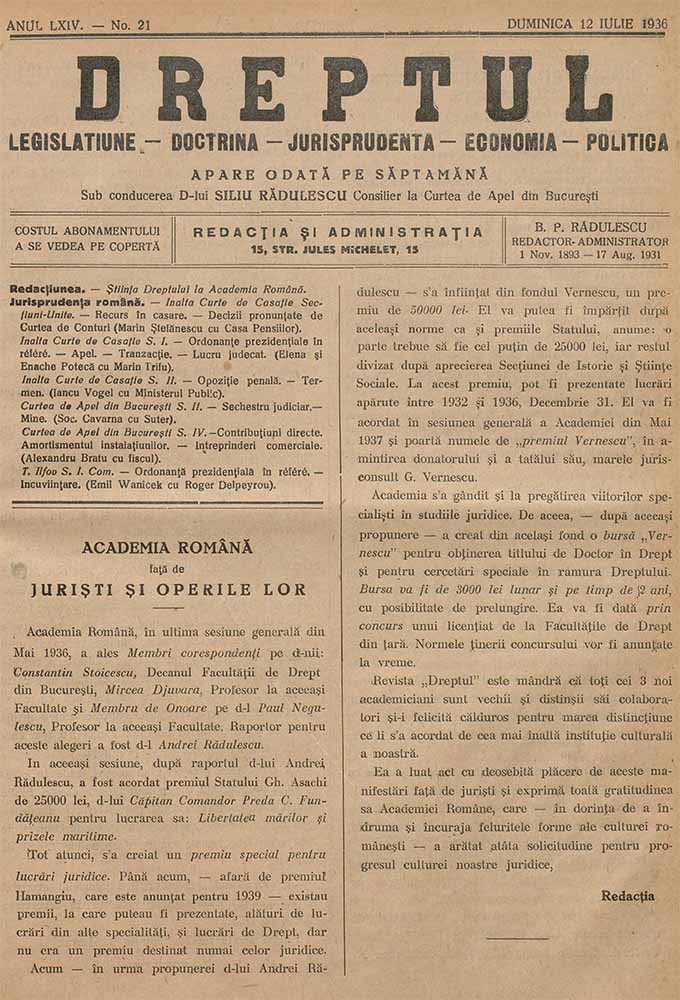 Dreptul, LXIV, nr. în TOM: 21, 12 iulie, 1936