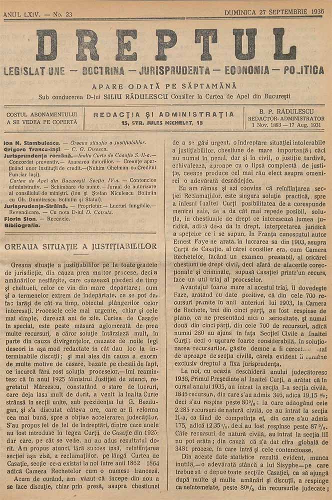 Dreptul, LXIV, nr. în TOM: 23, 27 septembrie, 1936
