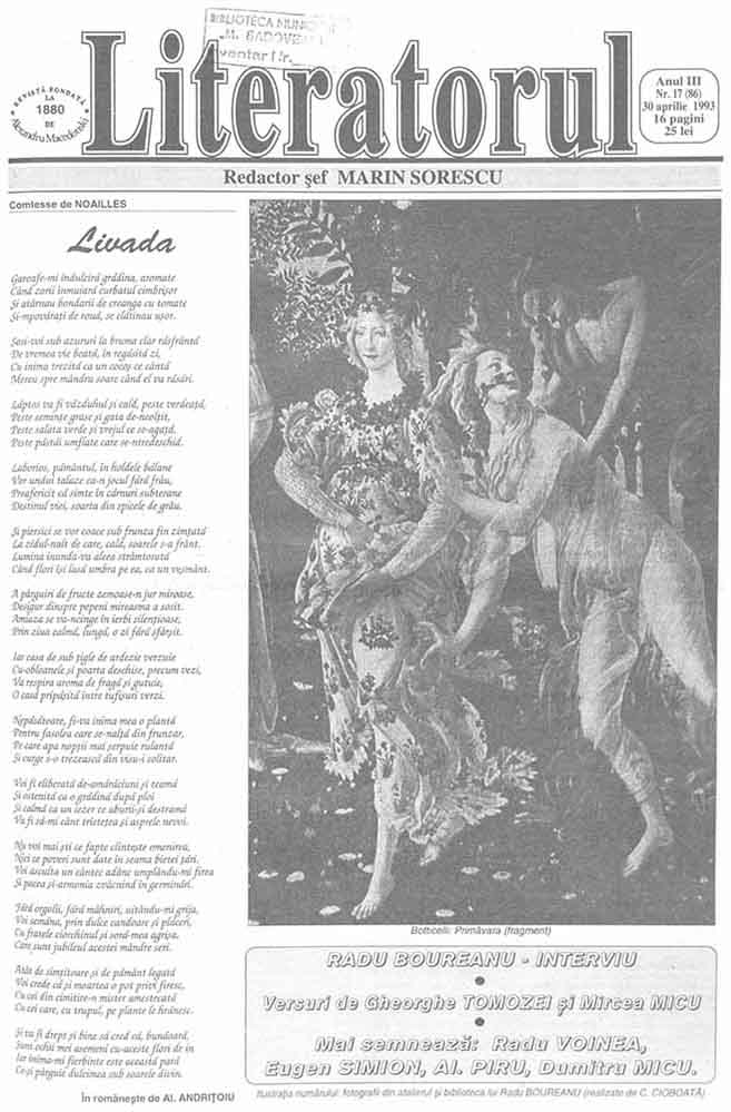 Literatorul, III, nr. în TOM: 17, 30 aprilie, 1993, serie nouă