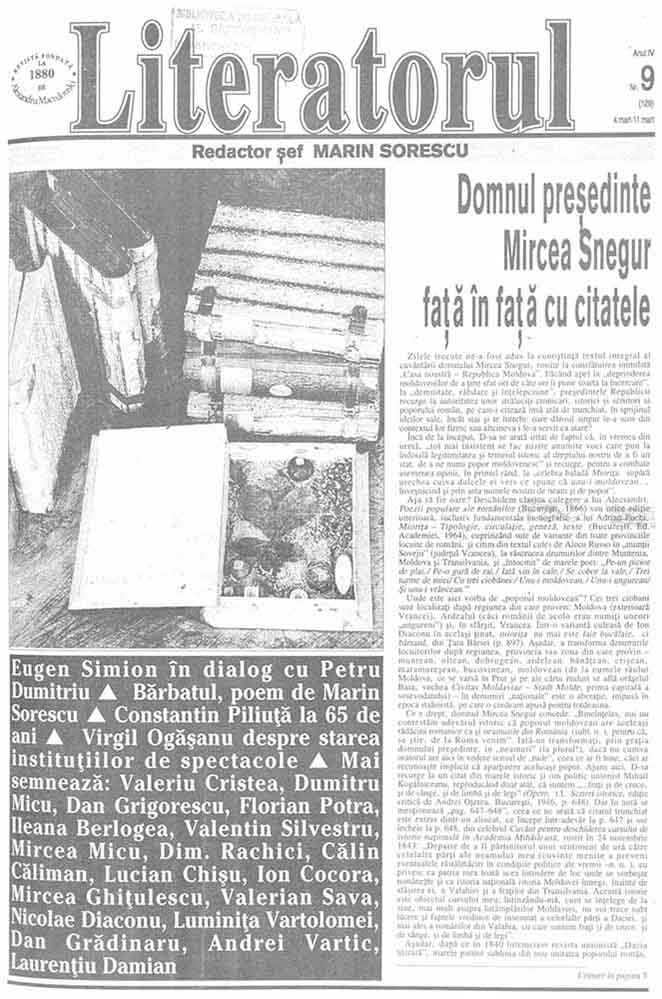 Literatorul, IV, nr. în TOM: 9, 4 - 11 martie, 1994, serie nouă