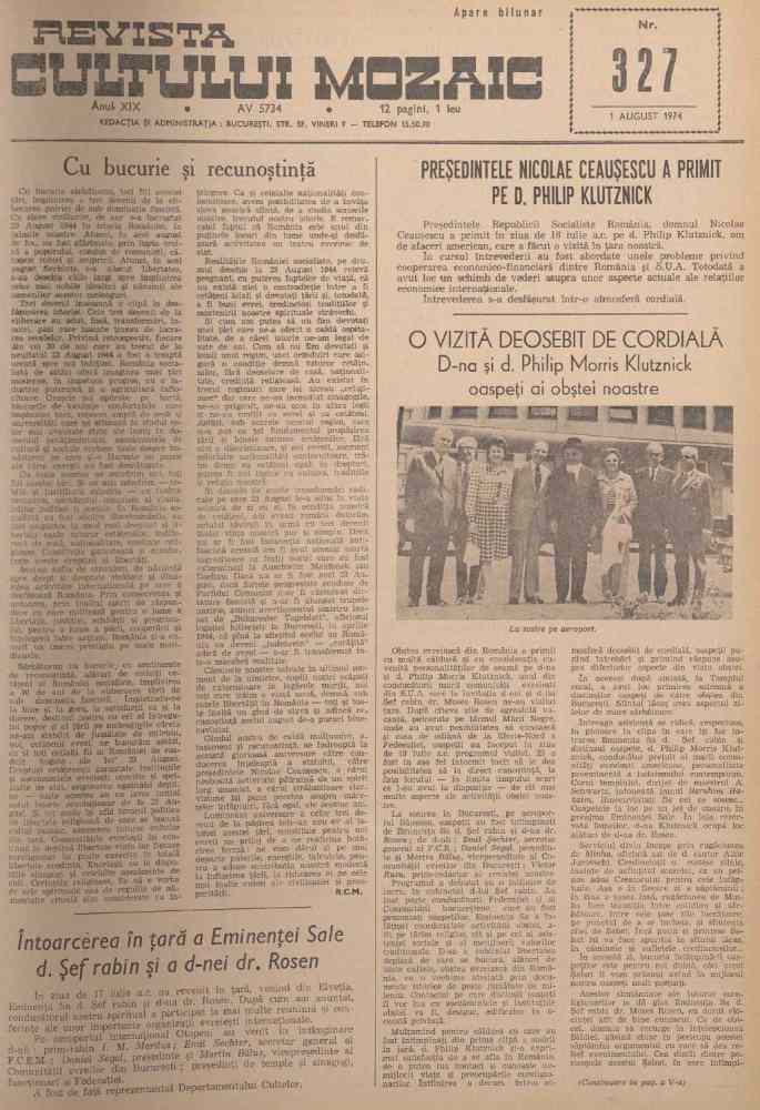 Revista Cultului Mozaic, XIX, 1 august, 1974