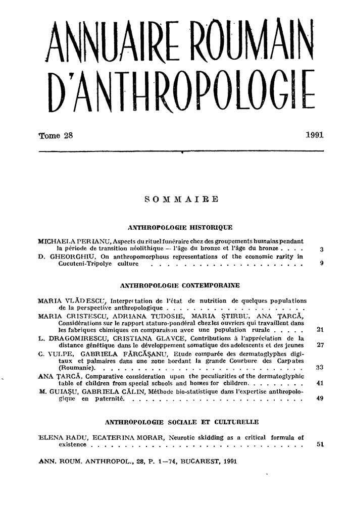 Annuaire roumain d`anthropologie: ARA, 28, 1991