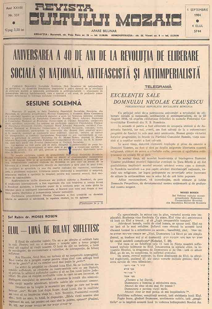 Revista Cultului Mozaic, XXVIII, 1 septembrie, 1984