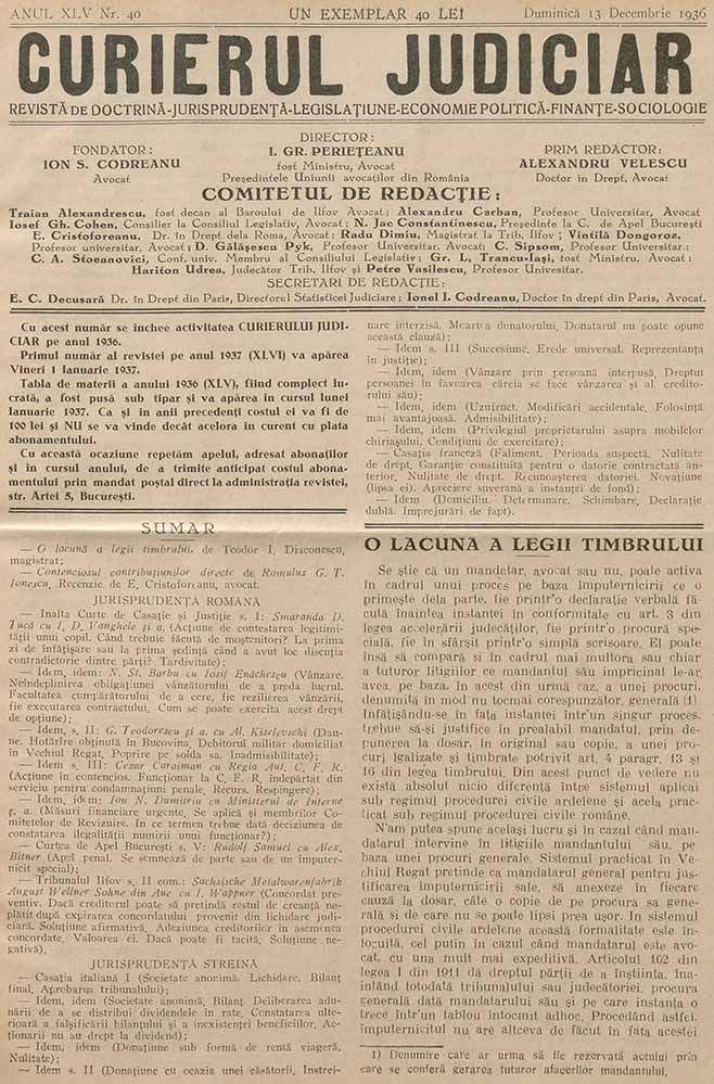 Curierul Judiciar, nr. în TOM: 40, 13 decembrie, 1936