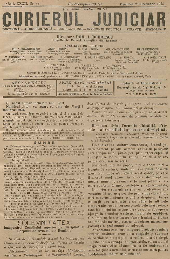Curierul Judiciar, nr. în TOM: 44, 23 decembrie, 1923
