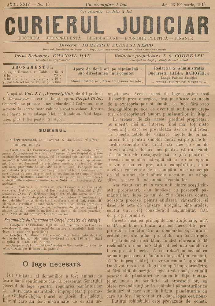 Curierul Judiciar, nr. în TOM: 15, 26 februarie, 1915 info Descriere × DOCTRINĂ - JURISPRUDENȚĂ - LEGISLAȚIUNE - ECONOMIE POLITICĂ - FINANȚE Descarcă Citește × --> Anul publicației: 1915 Nr. total: XXIV Contributori: Institutul de Istorie „Nicolae Iorga” București Tipul publicației: periodic Vezi publicația: Curierul Judiciar Domenii asociate: Istorie, Justiție