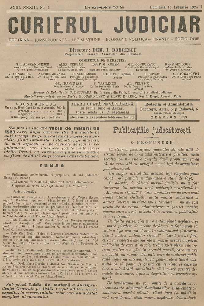 Curierul Judiciar, nr. în TOM: 2, 13 ianuarie, 1924